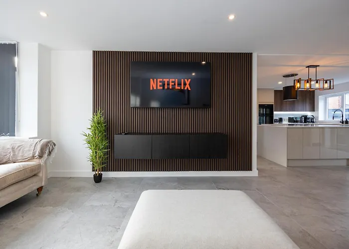 La Modern 5-Bed Home Ev City Centre 10 Min Mánchester, situada a 4 km del Centro de Mánchester, cuenta con un patio con vistas al jardín.